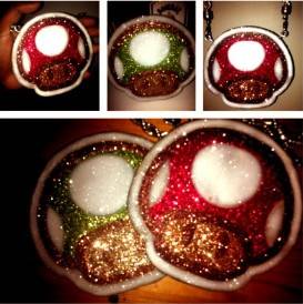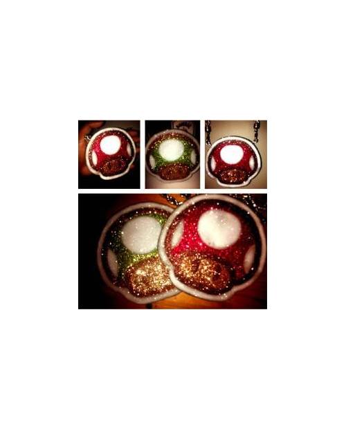 Fashion necklace in the shape of mushrooms, red and green color, glitter. This is a specific HeartJacKing, findable anywhere else! In addition, we hold in stock a large number of models. Our designers have designed these pieces inspired by the swag design: fashion necklace, necklace stylish, original jewelry, jewel dark wood, etc.. Go higher on this page to watch some of the items available and select the product that you like the most! This accessory is handmade by the artist, so you will find no two alike! Do not wait to get the most asked for time fashion necklace, and just you possess!