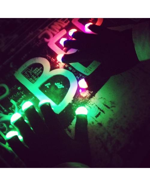 Une fois les leds des gants activées, c'est une explosion de couleurs au bout des doigts