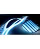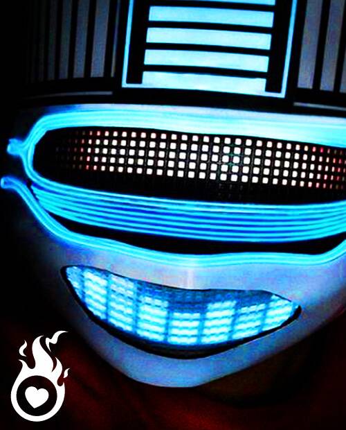 The Daft Punk helmet is created from different logos equalizer bluish, distributed at the level of the mouth and on the top of the head. Hence this very designer look. These parts are connected to a mini microphone, this Daft Punk helmet electroluminescent then comes alive according to the rhythm of the music! In addition, this helmet also has luminous zones that light up independently of the sound, while remaining in a futuristic spirit.