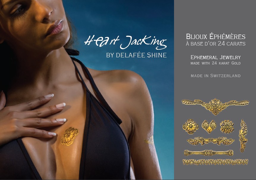 Attention here is a world exclusive tattoos gilded with 24 carat gold basis. Indeed, a co-branding between jacking and DeLafée Heart (Swiss company specializing in luxury gold) was born a collection of tattoos gilded with 24 carat gold!