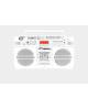 Deux HP, une télécommande, c’est tout ce qu’il vous faut pour jouer votre musique sur la boom box blanche. Vous pouvez également lancer votre liste de lecture depuis votre PC, tablette ou Smartphone grâce au Bluetooth directement sur votre boom box blanche.