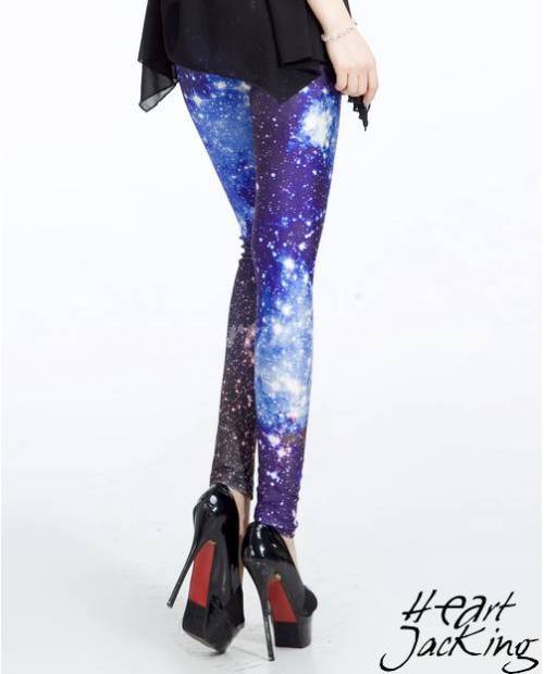 Aubergine, bordeaux ou lilas pour les plus courageuses, en simili, en jean ou de deux matières, le leggings galaxie se retrouve dans tous les looks. Le leggings galaxie se doit d’être dans toutes vos penderies Mesdames ! Court, arrivant aux mollets ou plus voyant, descendant jusqu’à vos chevilles, le leggings galaxie représente une pièce tendance basique qui permettra aux plus timides de vêtir des shorts, une mini jupe ou un haut long par (-30) degrés en pleine tempête hivernale ! Le leggings galaxie offre le choix aux plus charmeuses de vêtir une alternative affriolante, car très moulante, aux pantalons habituels.
