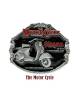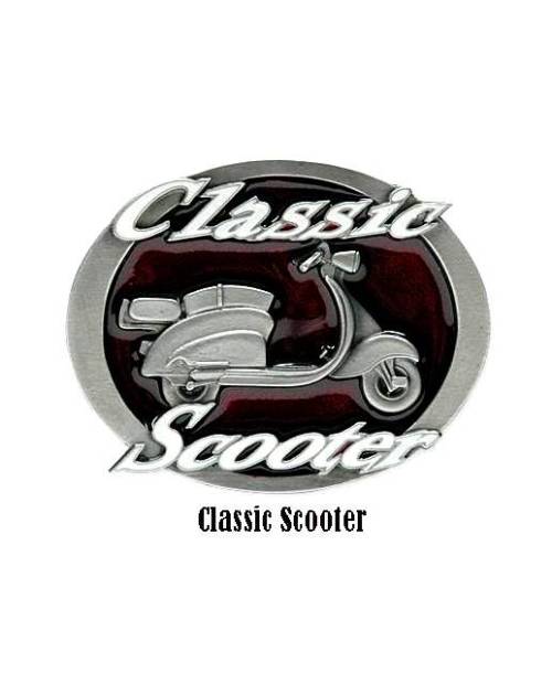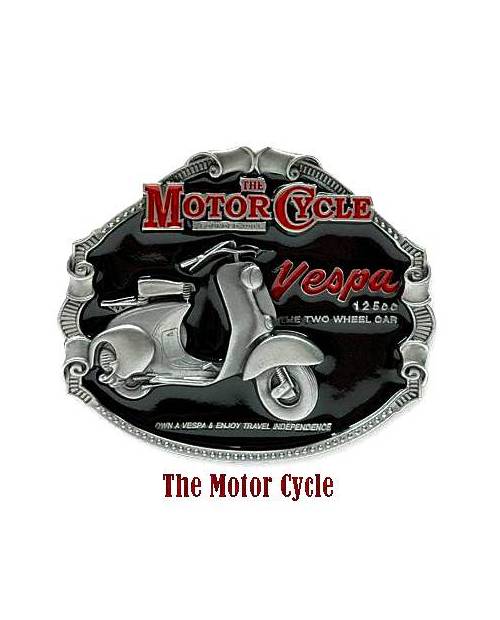 Accessoire Vespa de couleurs sombres, en métal. Boucle rétro représentant la fameuse Vespa italienne ! Une accessoire Vespa esthétique terminant un habit ! Fini de patienter !