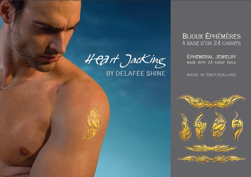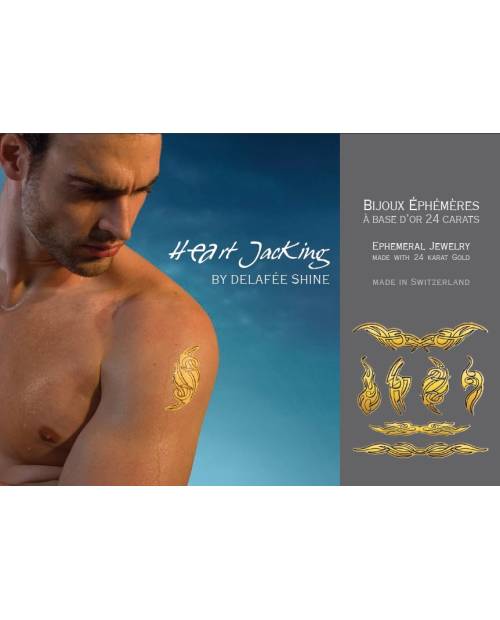 Le bijou or Heart JacKing / DeLafée s’applique très simplement sur le corps par un procédé de décalcomanie. Des conseils et explications d'apposition de votre bijou vous seront envoyées avec votre bijou or . Appliqués selon les instructions, le bijou en or 24 carats gardera toute sa beauté et son éclat plusieurs jours, puisque le bijou or ephemere est résistant à l'eau.