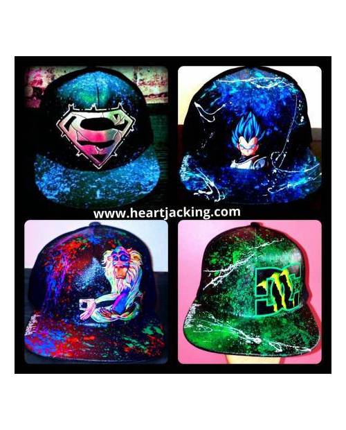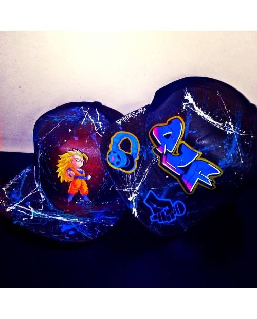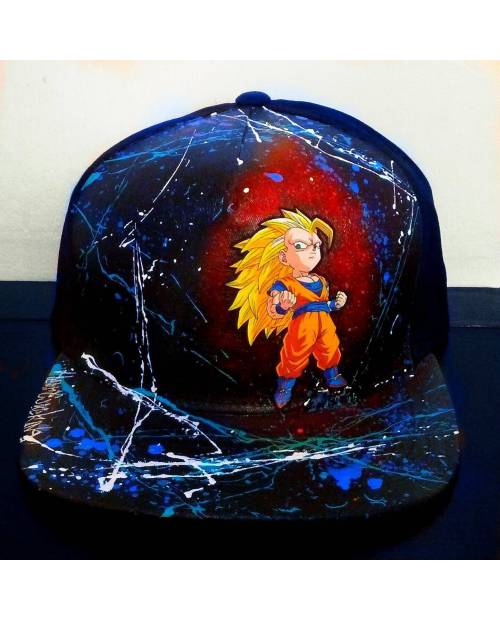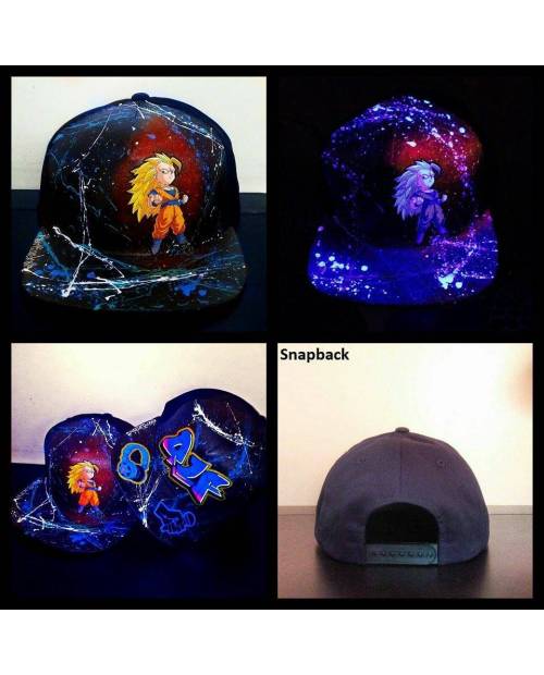Casquette Sangoku 3 : casquette Dragon Ball personnalisée à la main par notre designer. L'assurance d'un vêtement-oeuvre-d-art, unique. La casquette Sangoku 3 personnalisée s'illumine dans l'obscurité, portez la de jour comme de nuit ! Tout est fait à la main, chaque casquette est unique. Choisissez votre casquette Dragon Ball New Era, snapback, ou autres, et même les couleurs !