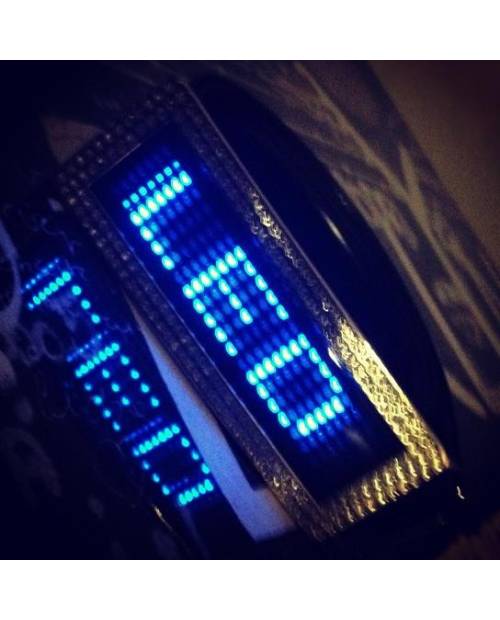 Cette ceinture bleue faite à la commande par notre designer n’aurait pas grande utilité sans ses leds. Choisissez leur vitesse, leur luminosité, ou encore leur genre d’animations. Diffusez les idées que vous avez envie, entre autres via des caractères peu ordinaires (dollars, cœurs remplis, soleils…). On peut retenir 8 textes de 512 caractères sur cette ceinture. C’est comme envoyer un texto, puisque de mini boutons sont présents derrière l’écran led. Une feuille d'explications en langue française vous sera malgré tout fournie avec le produit, par précaution.