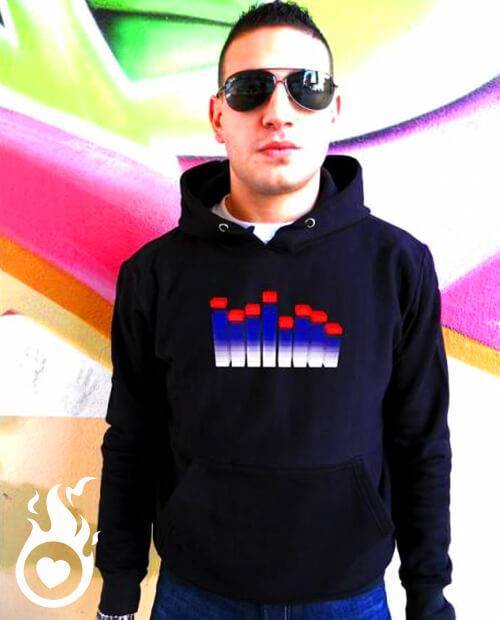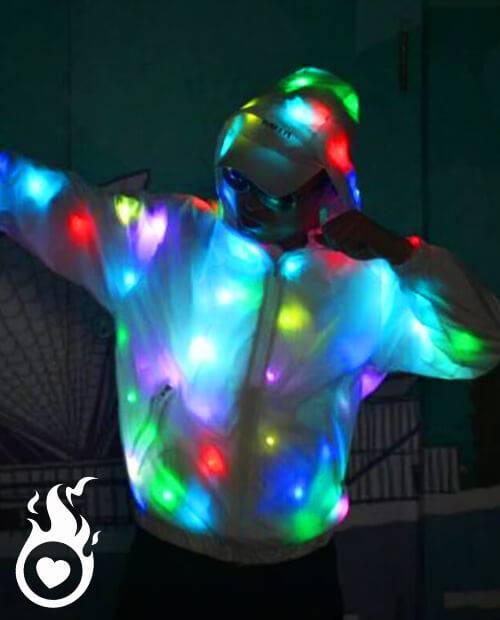 Portez cette veste adulte, et mixte pour homme comme pour femme, de manière simple la journée ou vêtissez-la en soirée, durant laquelle elle devient lumineuse grâce aux leds cousues le long de la fermeture éclair et autour de la capuche. Le sweat lumineux / veste led possède une capuche et des poches.