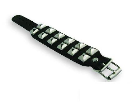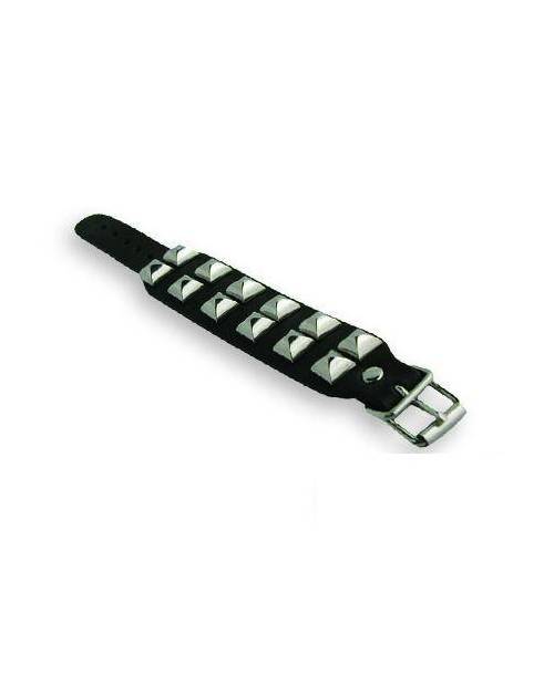 Ce bracelet est disponible en noir, cent pour cent croûte de cuir avec deux rangs clous pyramidaux. Le bracelet cuir rock est fabriqué en France.