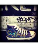 La manière dont travaille notre designer de chaussures personnalisées est un concept unique, que vous ne trouverez pas ailleurs ! La chaussure customisée Heart Jacking se porte de jour comme de nuit, dans la rue comme en boîte. Au départ, la chaussure est vierge et nous imaginons le décor. Le graff est ensuite peint. Finalement, nous ajoutons les effets types éclaboussures, gouttes de pluie, éclair, neige etc. La marque de vêtements personnalisés HJK vous propose un nombre exceptionnel de modèles. Regardez plus haut dans cette page produit pour voir les différentes autres paires de chaussures personnalisées ! Mais ces chaussures custom étant faites main par notre designer, votre chaussure graffée sera unique ! Elle sera faite sur la base de la photo ci-dessus, mais notre graffeur tiendra compte des modifications que vous avez demandées. Impossible que vous trouviez deux fois le même article ailleurs.