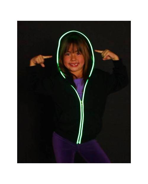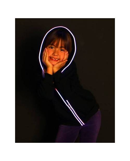 Éclairez la vie de votre enfant avec ce sweat lumineux capuche et comblez le à son anniversaire, ou Noel ! Ce pull mixte pour enfant s’illumine vraiment, grâce à ses LED intégrées, fermeture éclair et capuche. Cela fait plaisir à votre enfant, et cela vous rassure : votre enfant est visible de loin, même dans la nuit ou l’obscurité. Disponible en plusieurs couleurs de leds, et en adulte aussi !