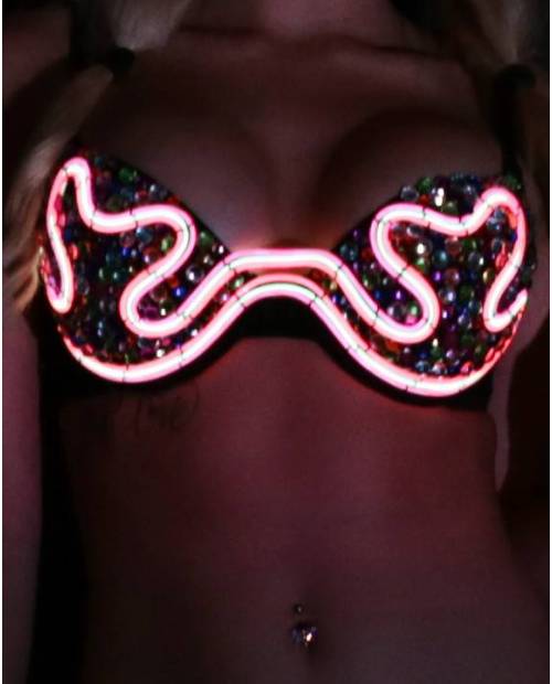 Soutien gorge lumineux, orné de strass et de leds. Brillez de mille feux, au sens propre du terme !