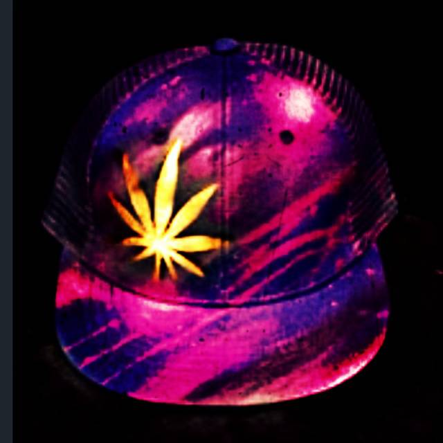 Casquette Kush "Purple" avec feuille de cannabis. Casquette unique et peinte main, nous personnalisons pour vous ! Modele de casquette (New Era, Snapback, Filet...) + autre options (texte, couleurs...) au choix ! Comme toutes nos casquettes, cette casquette réagit à la lumière noire.