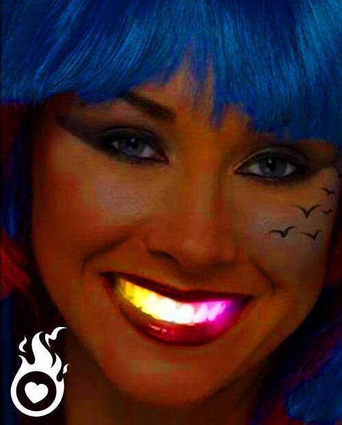 Dentier lumineux pour la fete : faites de votre sourire votre plus bel atout ! Modele normal ou vampire. D'une simple pression votre bouche s'illumine ! Cet accessoire en silicone souple, transparent et haute qualite, possede des leds multicolores clignotantes. Ideal pour Carnaval, Halloween, Cosplay, soiree deguisee, ou toute autre fete, le dentier est sans risque et a une autonomie de 10h.
