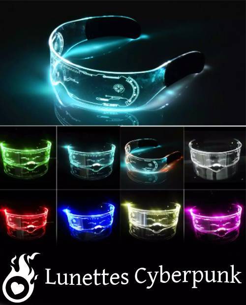 Nos lunettes Cyberpunk LED, alias lunettes Steampunk Lumineuses, sont idéales pour les festivals, raves, soirées ... Lunettes Cyberpunk lumineuses design par Heart Jacking, introuvables ailleurs. Matériaux haute qualité. Ces lunettes possèdent plusieurs animations, et couleurs de LEDs. Harmonisez à votre tenue pour un style futuriste et branché ! Soyez immanquable lors de votre prochaine sortie.