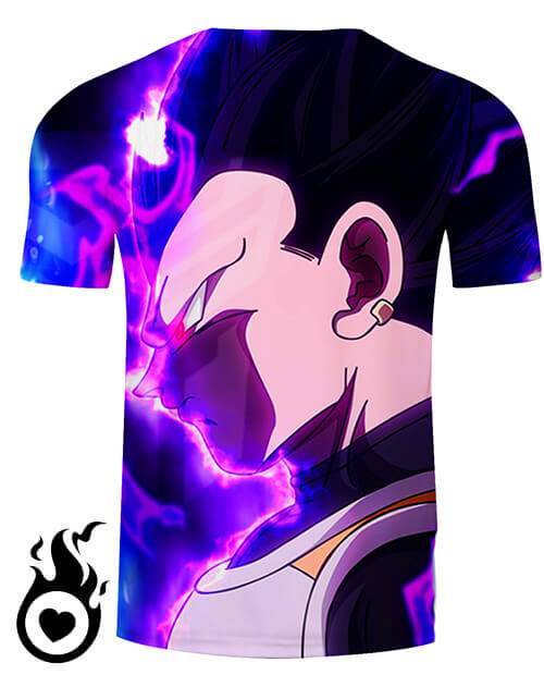 Le prince saiyan débloque ce nouveau pouvoir représenté sur le t shirt Vegeta Ultra Ego lors de son affrontement contre Granola, dans la série Dragon Ball Super.