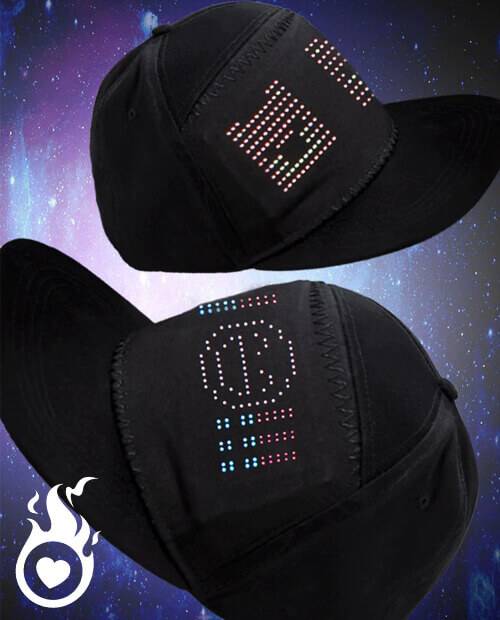 Ce couvre-chef est doté de la dernière technologie : auparavant aucun autre article ne permettait l'affichage d'une image qu'on peut changer.