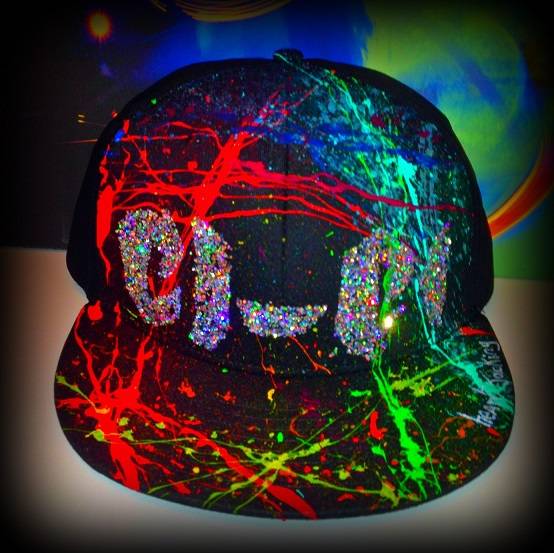 Casquette multicolore avec effet fluo à la lumière noire ! Casquette personnalisable, demandez ce qu'il vous plaît et notre designer réalisera une casquette stylée selon vos souhaits.