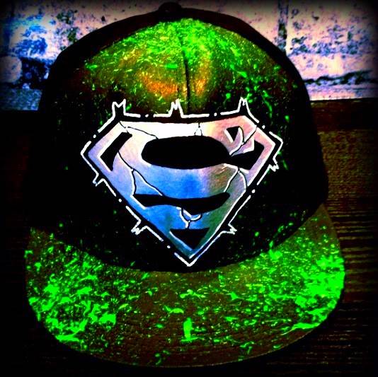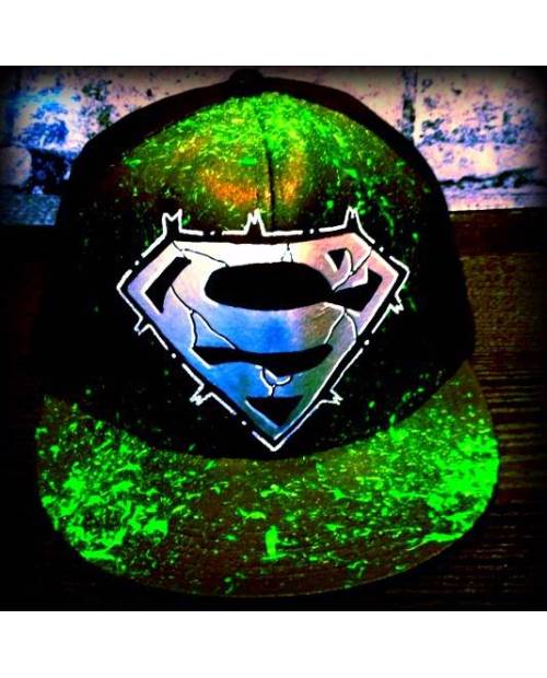 La casquette customisable Superman est arrivée !100 % coton et entièrement faite à la main, cette casquette va vous rendre unique. Plus qu'un accessoire banal, la casquette customisable Superman possède un atout très original : elle réagit à la lumière noire (photo numéro 2) ! Vous n'en trouverez nulle part ailleurs.