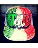 C'est notre customiseur, Alexandre Tete, qui crée toutes nos casquettes. Cette New Era Italie est faite à la main, sur commande, à partir d'un modèle vierge. Notre artisan applique d'abord les couleurs de fond, puis inscrit le texte et termine avec les finitions de couleurs façon graff. Recevez alors une magnifique casquette colorée à la bombe de peinture, une New Era personnalisée et unique. On vous met au défi de trouver ailleurs exactement la même ailleurs. Profitez de votre passage sur ce modèle de casquette pour visiter notre site. Nous avons plusieurs dizaines de casquettes fashion, New Era ou autres, qui vous donnent le swag et vous font voyager parmi les grandes stars du sport ou de la musique. A voir donc les modèles: New York, Diamond, Flexfit, Illuminati, Monster Energy, Superman...